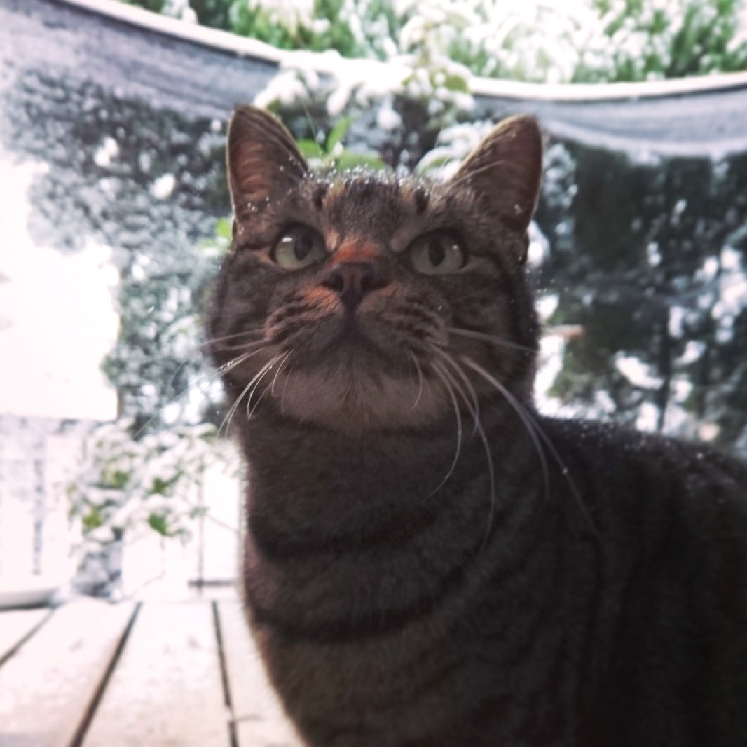 庭にやってくる外猫や鳥、風に揺れる葉っぱや花にどんな反応をするのかちょっと心配だったけど、とても楽しいようでずーーーっと眺めている。