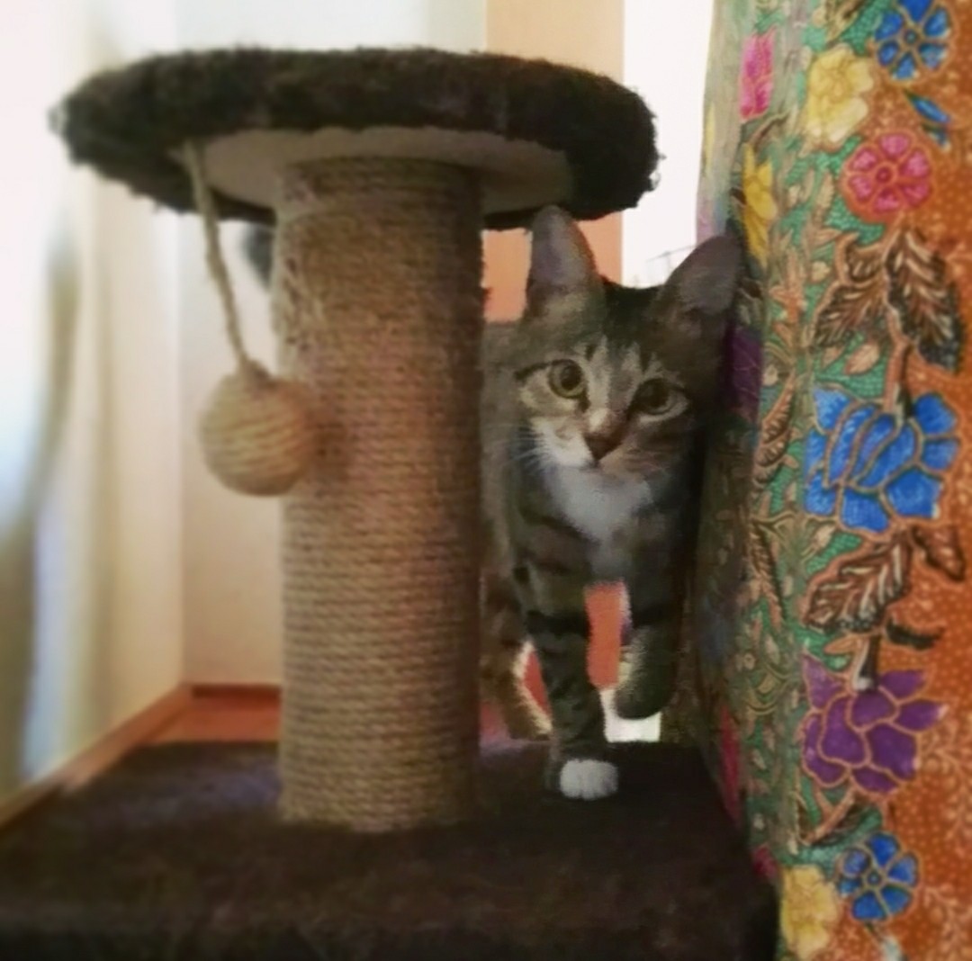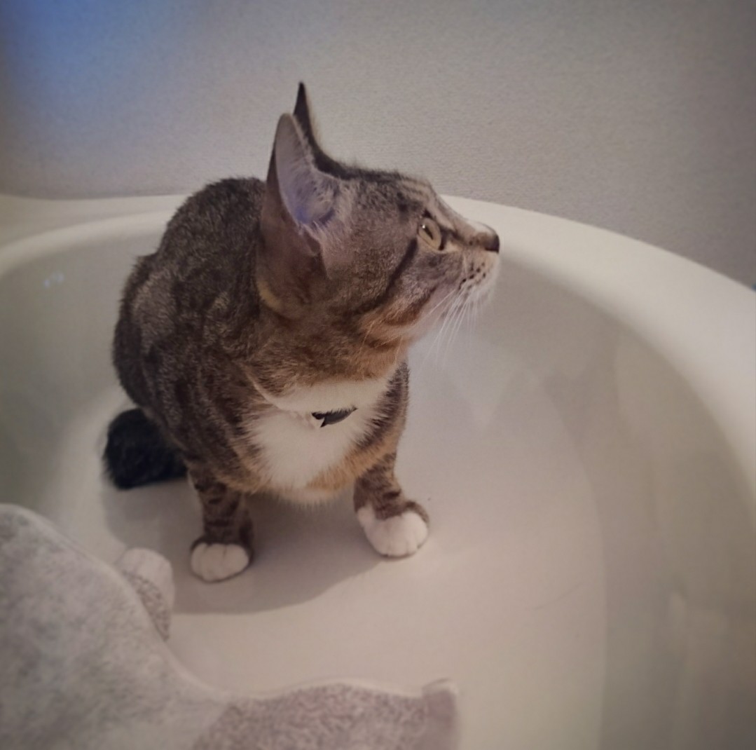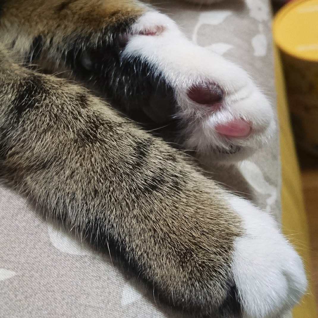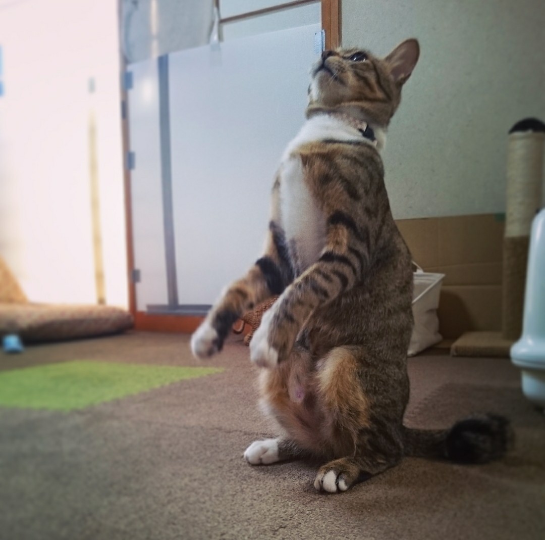 明け方からニャーニャー運動会をして、ゴハンを食べて、ぷりっと排泄して、きれいに掃除してもらって、おもちゃで遊んでもらって、あとは寝るだけとなったところ。