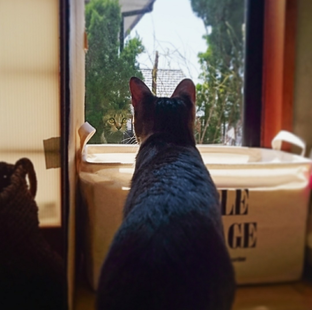 去年の夏ごろもちょこちょこ庭に来ていたけど、今年はクロといっしょに来ることがある。