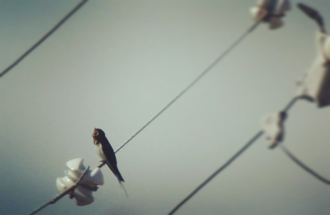 ツバメのオス(たぶん)が大きな口をあけてさえずり中。