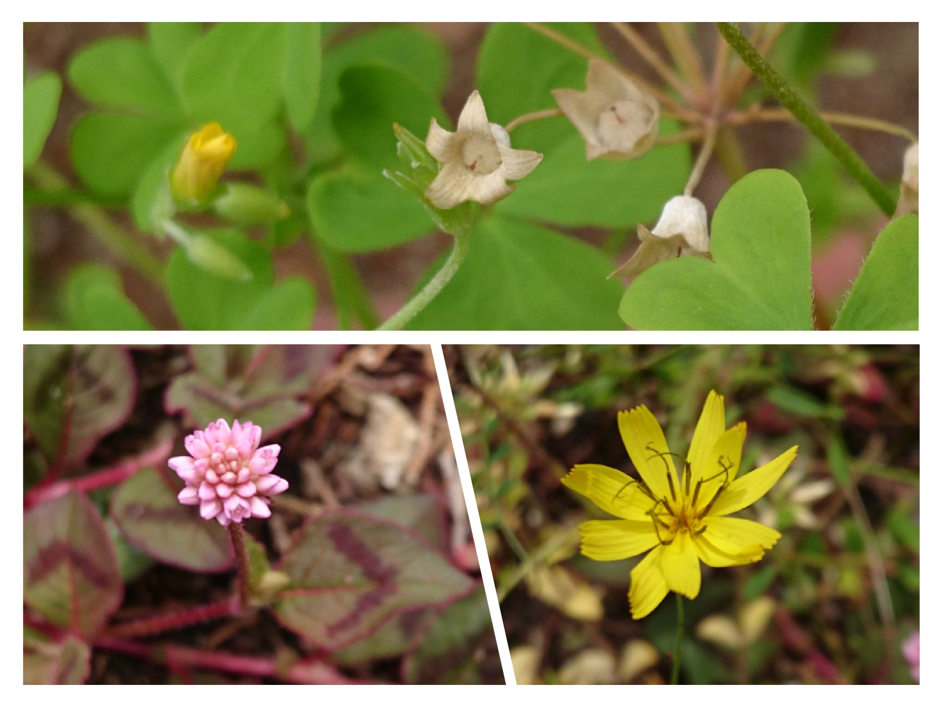 上:西洋桜草のタネとカタバミのつぼみ