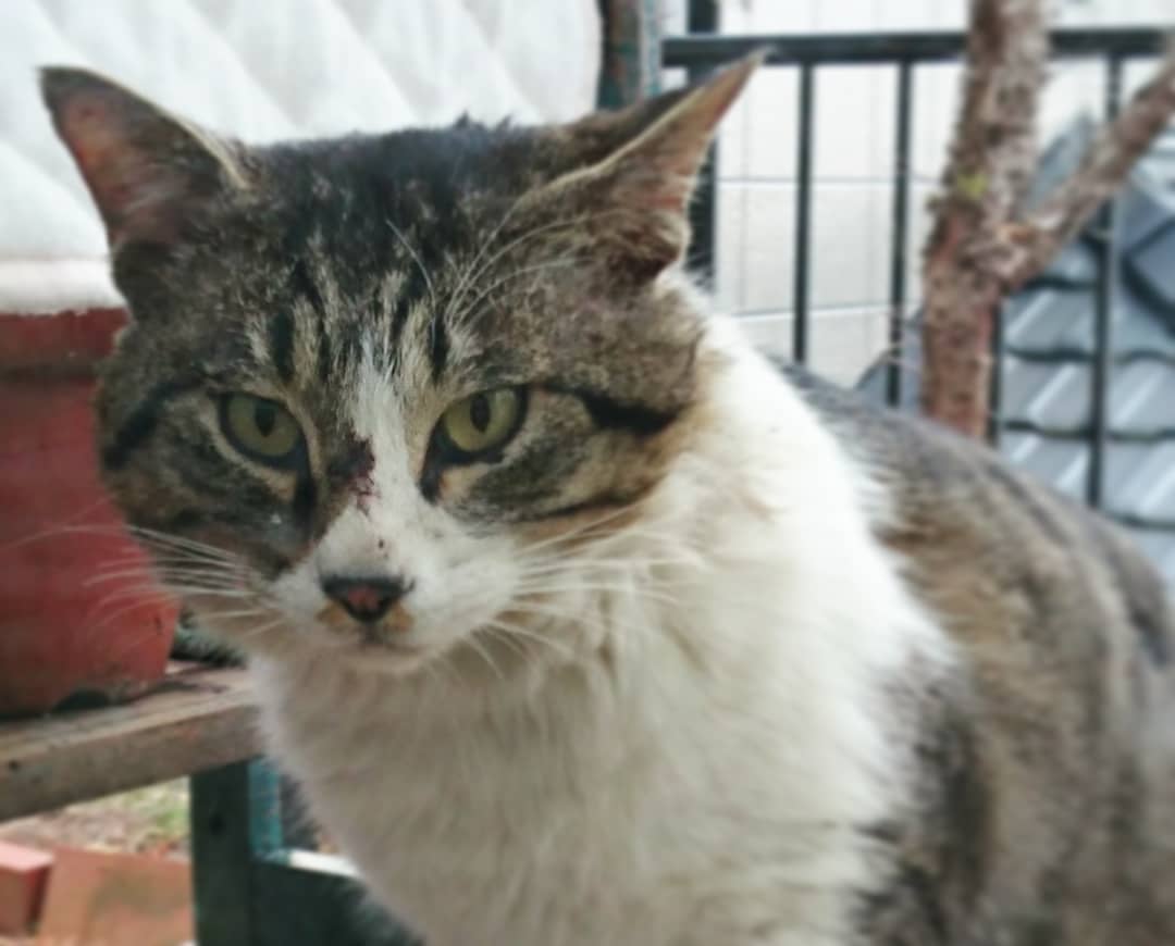 首の傷が治りかけたと思ったら、鼻筋に新しい傷。