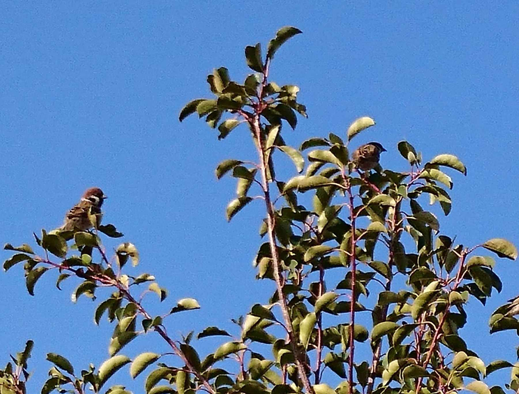 お隣のクロガネモチにスズメが。