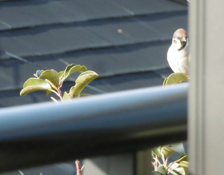 2階のベランダで洗濯物を干していたら、ここでもスズメがすぐそこに。