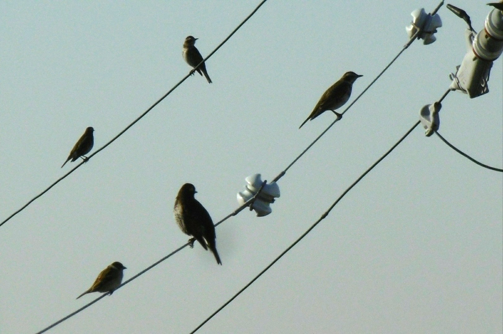 ツグミの中に1羽だけスズメが^^