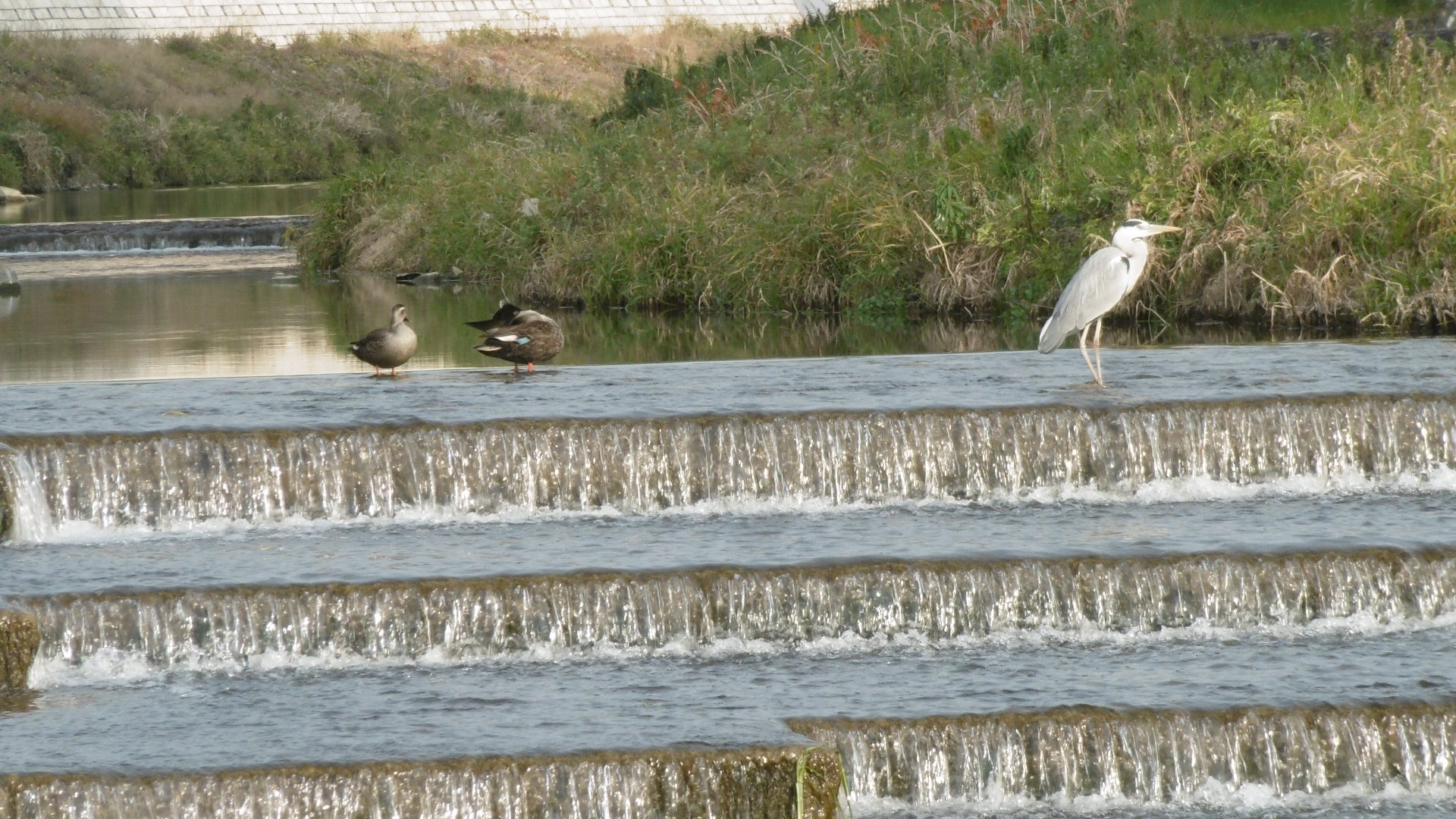 アオサギとカルガモのつがい。