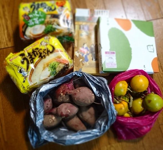お義父さんが天草のばあちゃんちでとってきた薩摩芋と渋柿を送るよーって、お義母さんから電話があった。