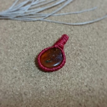石を紐でぎゅきゅっと包む編みかたを習った。