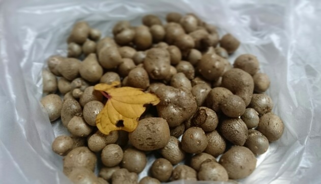 実家で採れたむかごを炊き込みご飯と素揚げにして食べた。