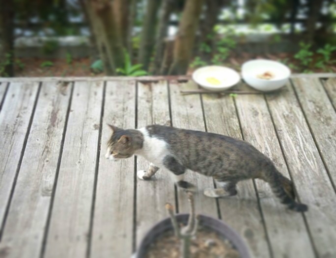 私の動きをチラチラ確認しながら、ウッドデッキをササーッと横切っていく。