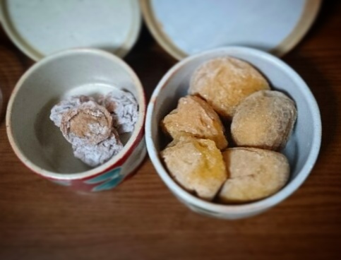 左の小さいのは去年の梅干し。
