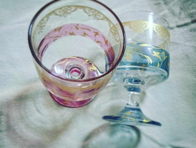 ガラスのカップに転写シールできれいな模様がついてる。