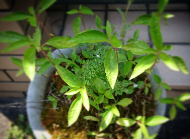 ダンナ作の雑草寄せ植えがわさわさしてきた。