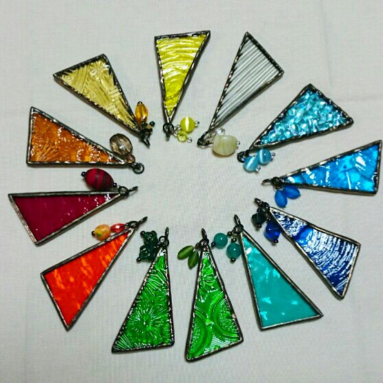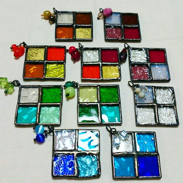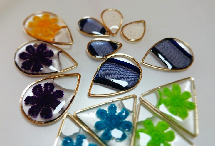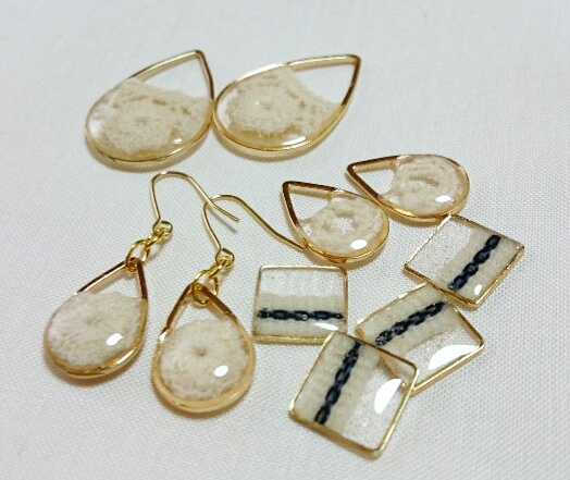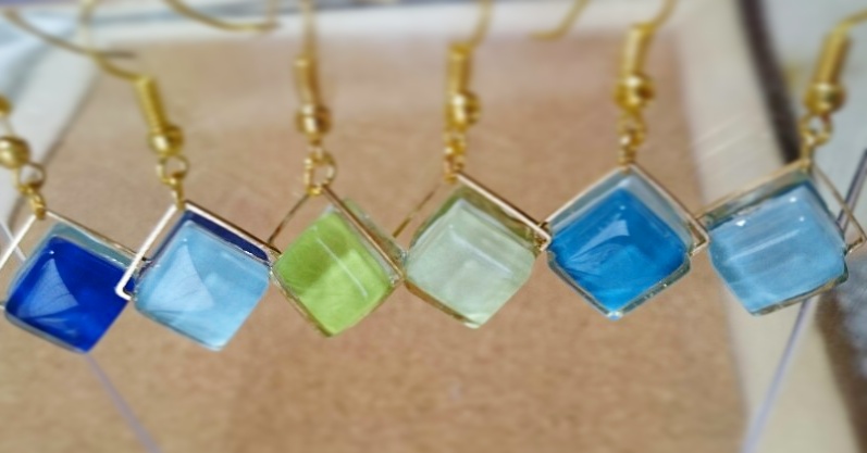 1㎝角のガラスタイルを張り合わせてピアスに。