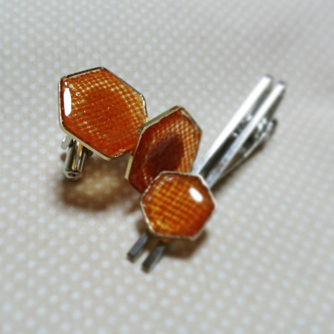 会社の若手男子に依頼されたタイピンとカフスは納品済みなんだが、まだ金具が残ってたからまた作ってみた。