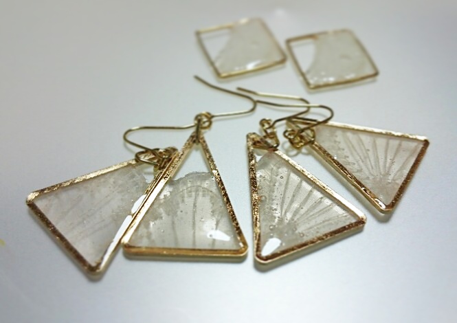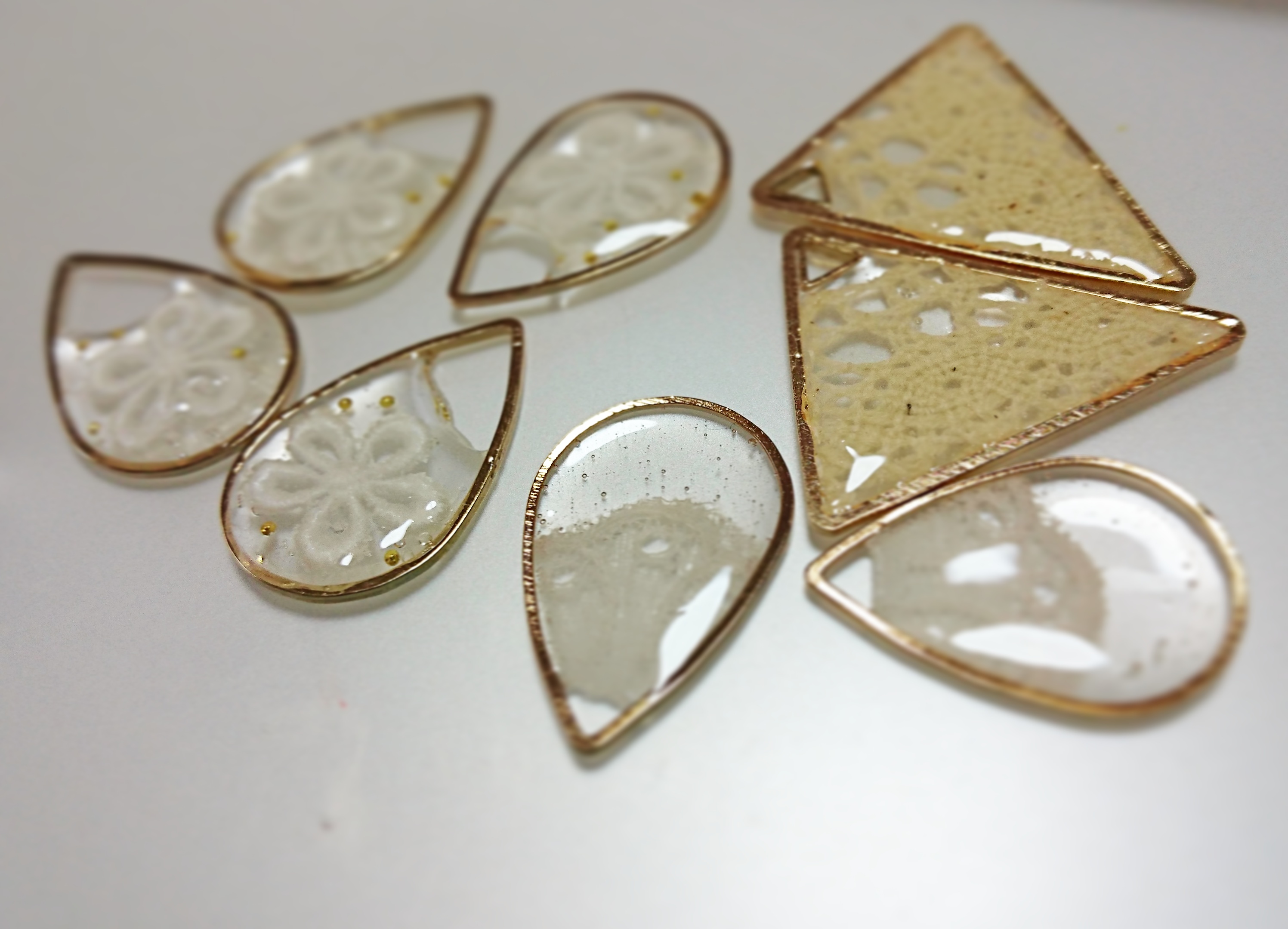 紫外線硬化樹脂の中にレース生地を閉じ込める作業にハマり中。