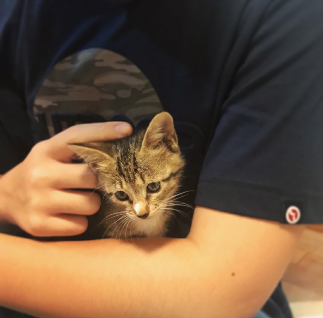 子猫を見るなり開口一番「あら!どしたの~?どこからきたの~?」と光の早さでしゃがんで目尻を下げた。