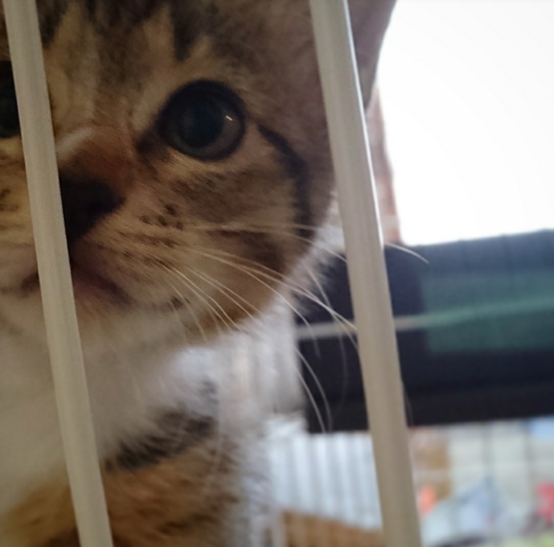 ケージの網目は縦長だから登れないだろうと思いきや、これも根性でガンガン登っていく暴れん坊…。