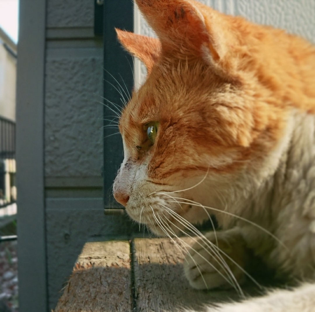 日が当たってきたらバスマットごと持ち上げて場所をずらす。