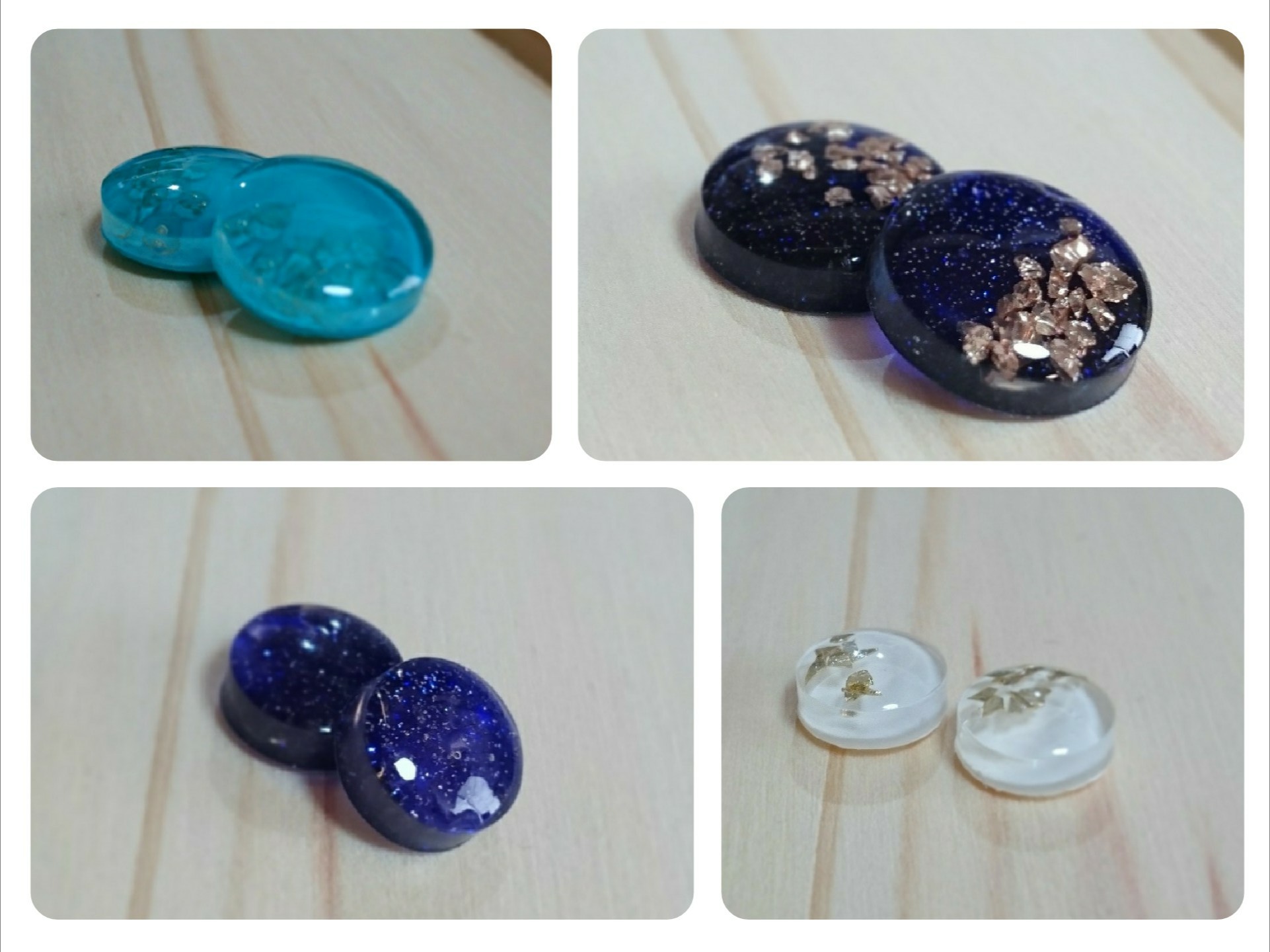 シルバーのラメフレークを入れて固めたレジンの裏に白いマニキュアを塗り塗り。