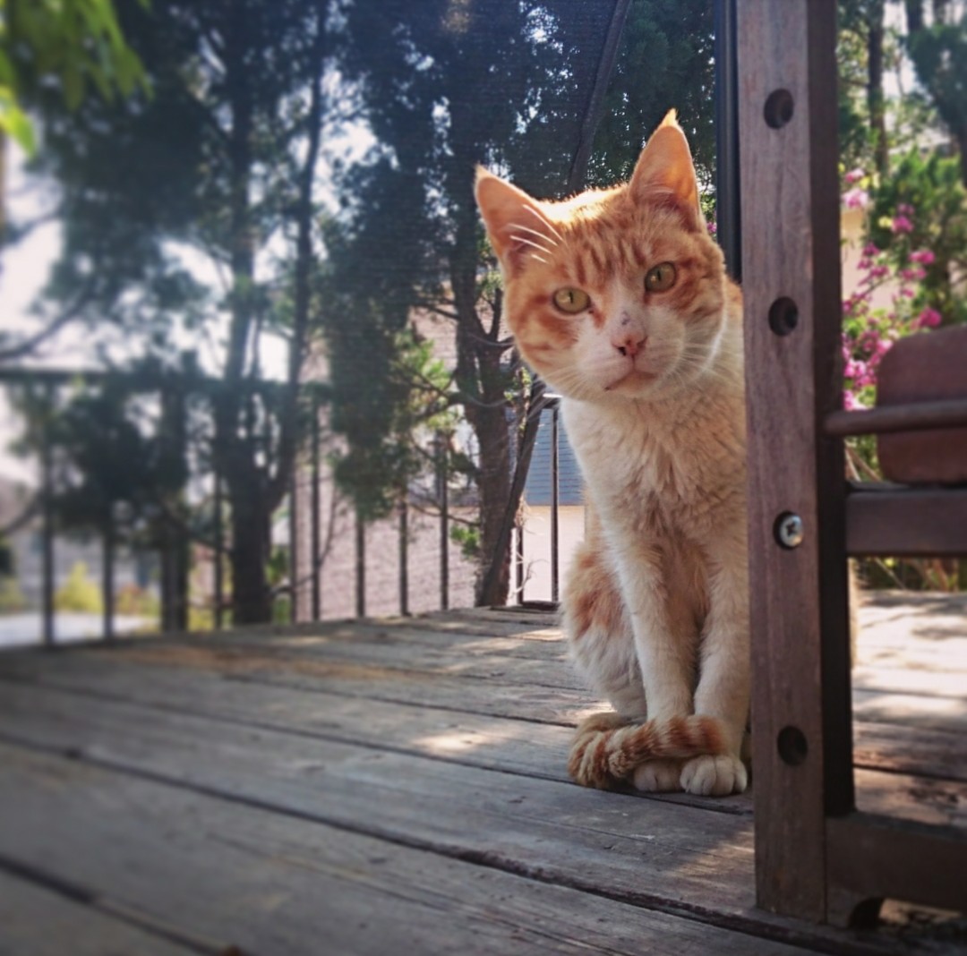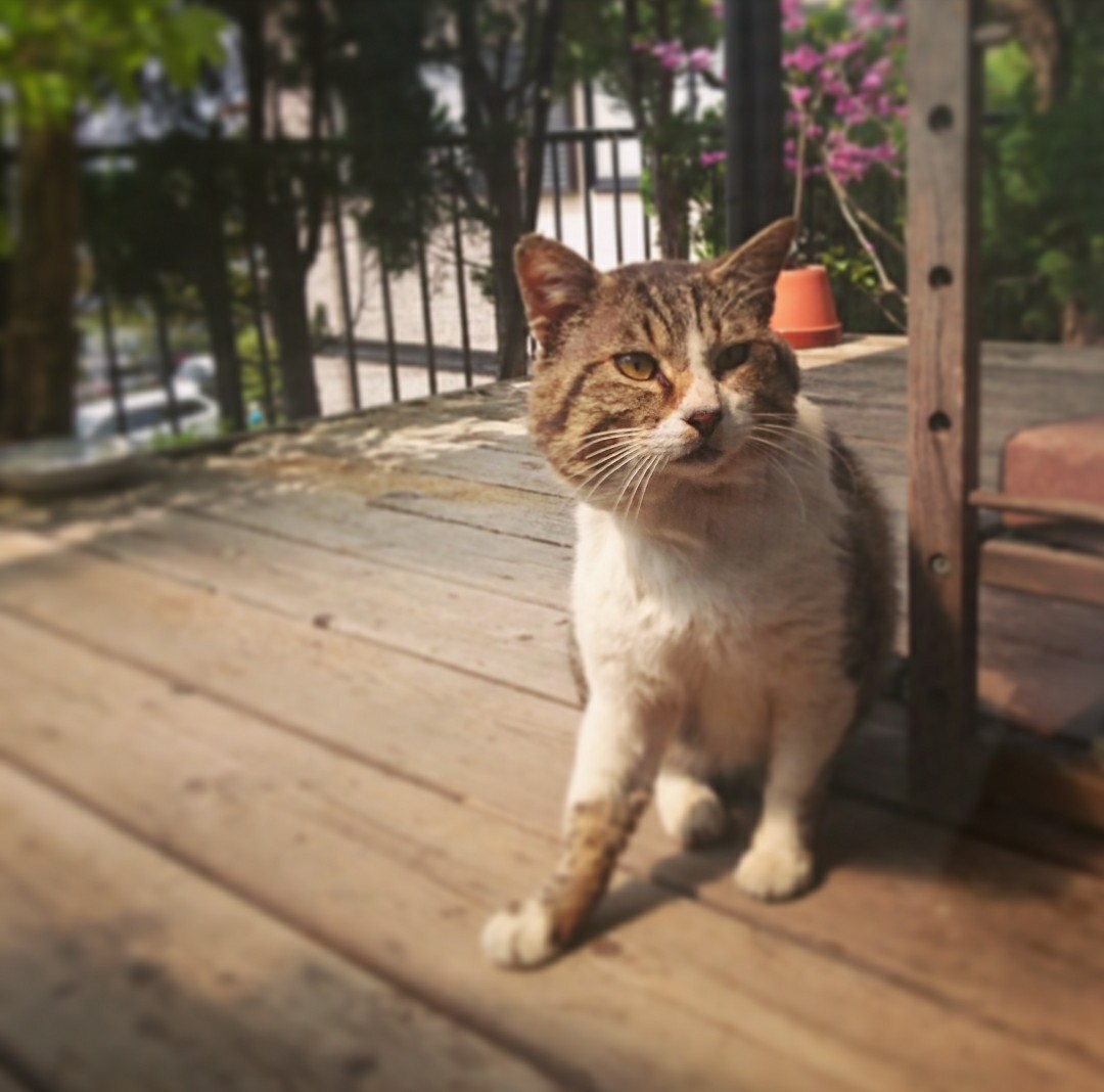 散歩の途中で一息ついてるのかな。