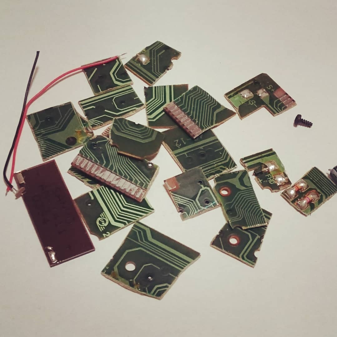 分解した電卓の基板でピアス試作。