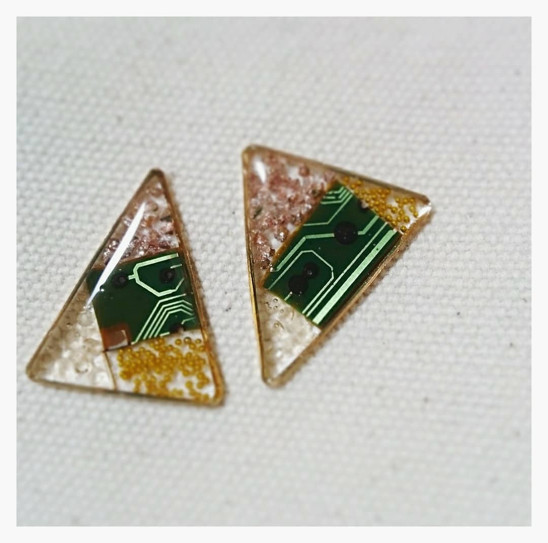 よくアクセサリー話で盛り上がる同僚ハケン女子から、基板の欠片をもらった。