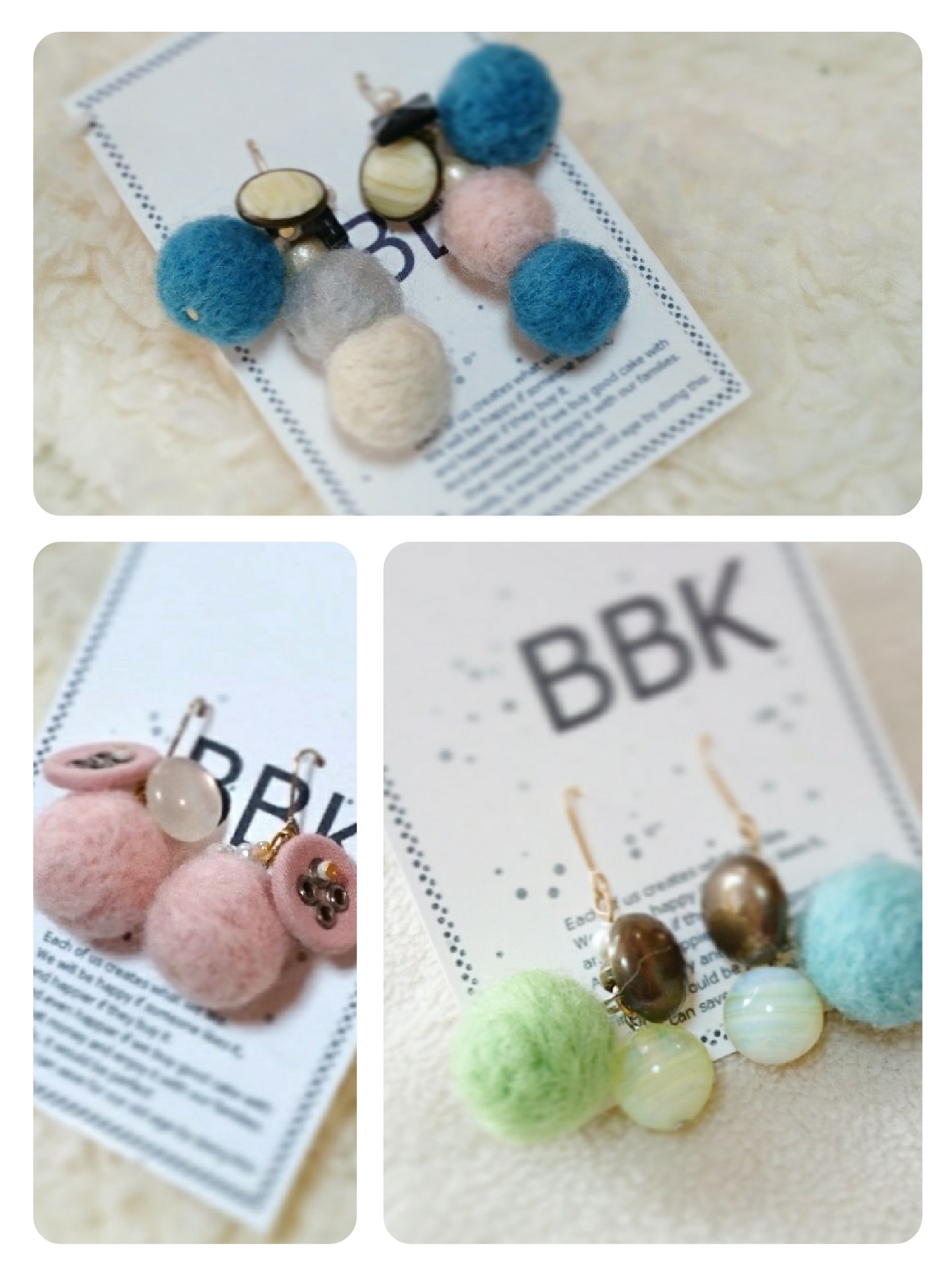 羊毛フェルトボールにボタンを合わせてみた。