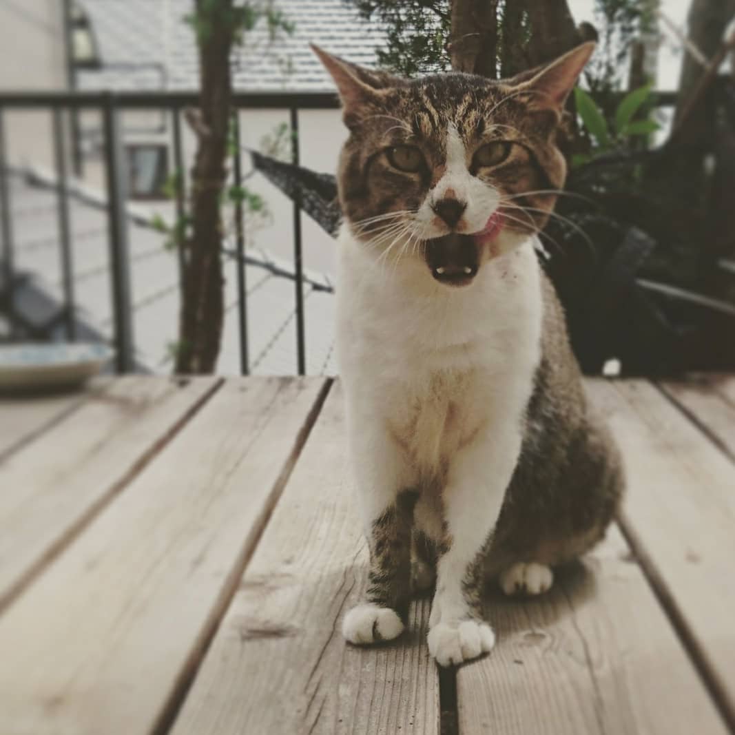 朝イチからハナコ、ボス、キジオ、トラオとエサを食べに来たのを見届けてから雨戸を閉めた。