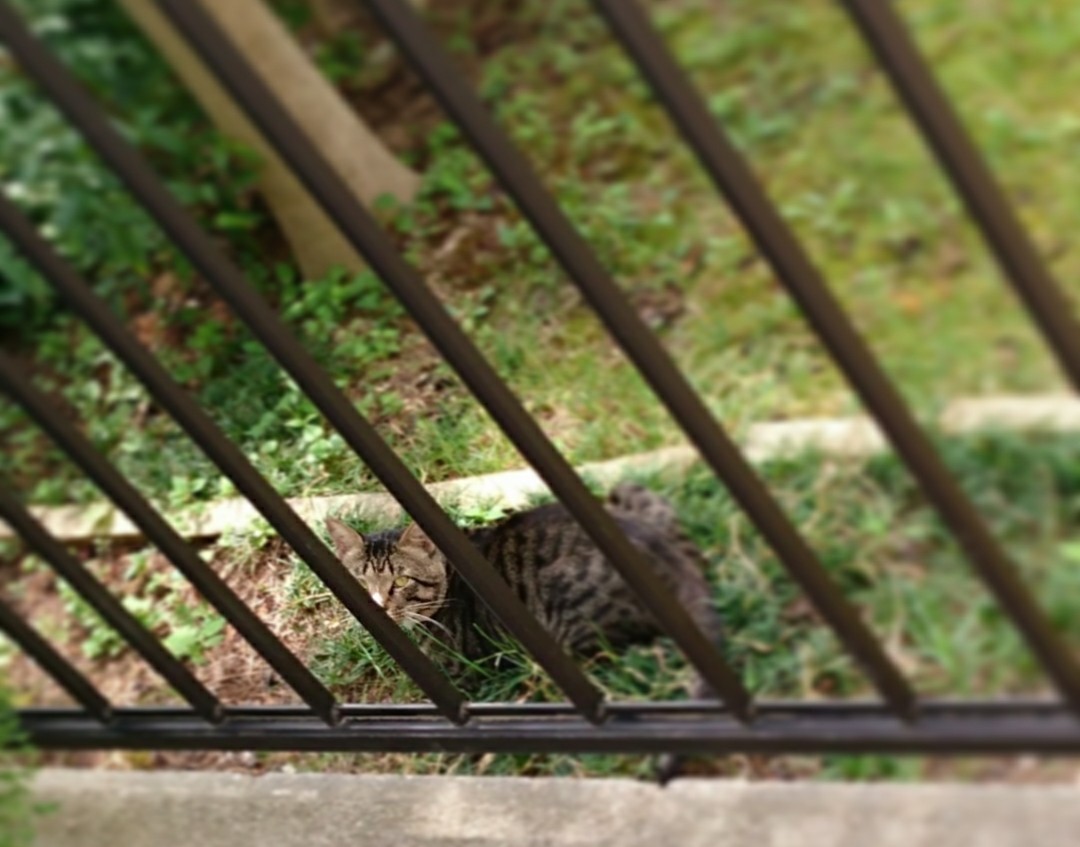 顔の位置からしてしゃがんでいるんだろう。