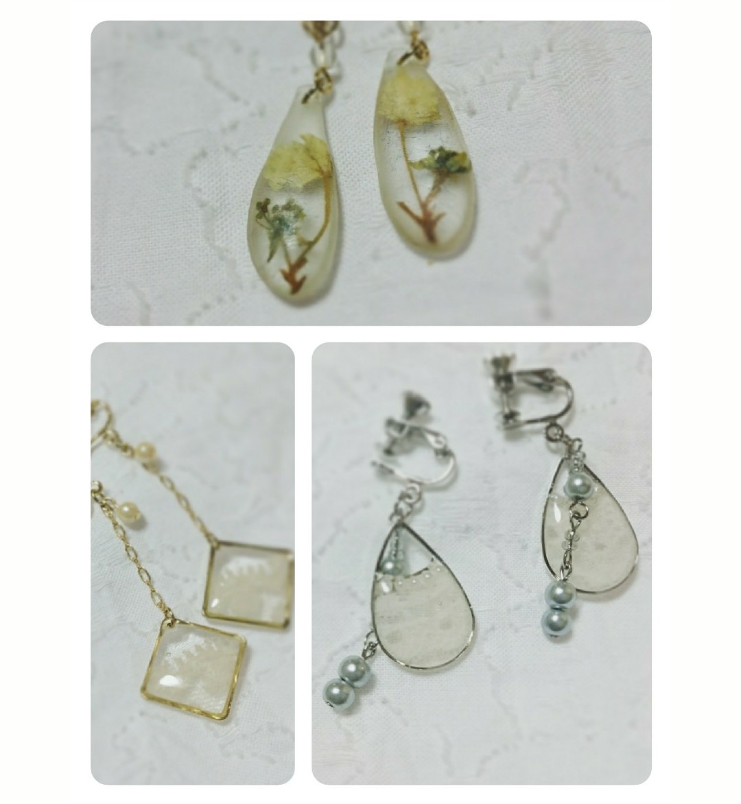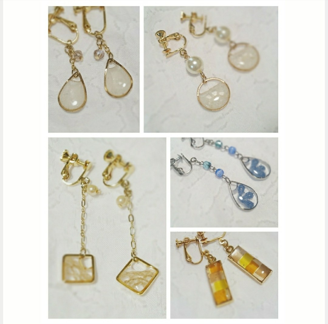 ぷらんぷらんするタイプのイヤリングを増産した方がよいというステンドグラス職人のアドバイスに従い、いろんなタイプを作ってみた。